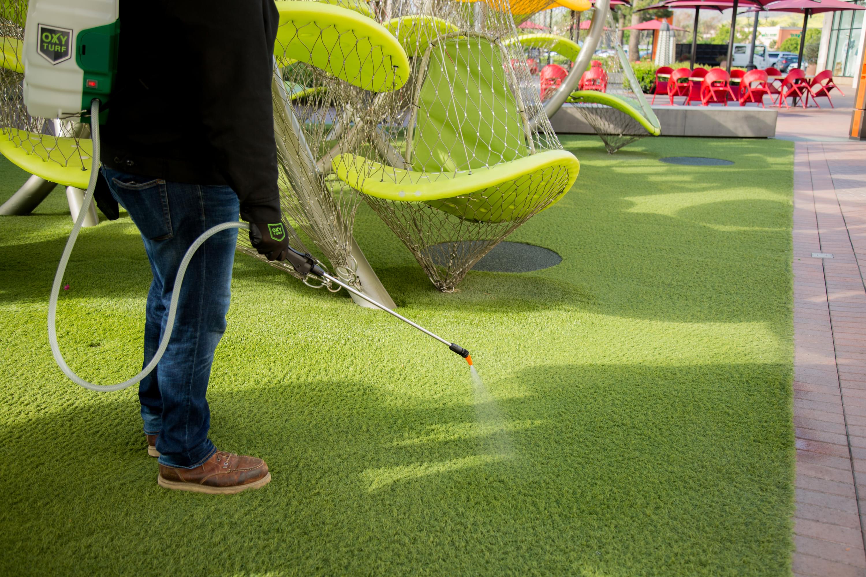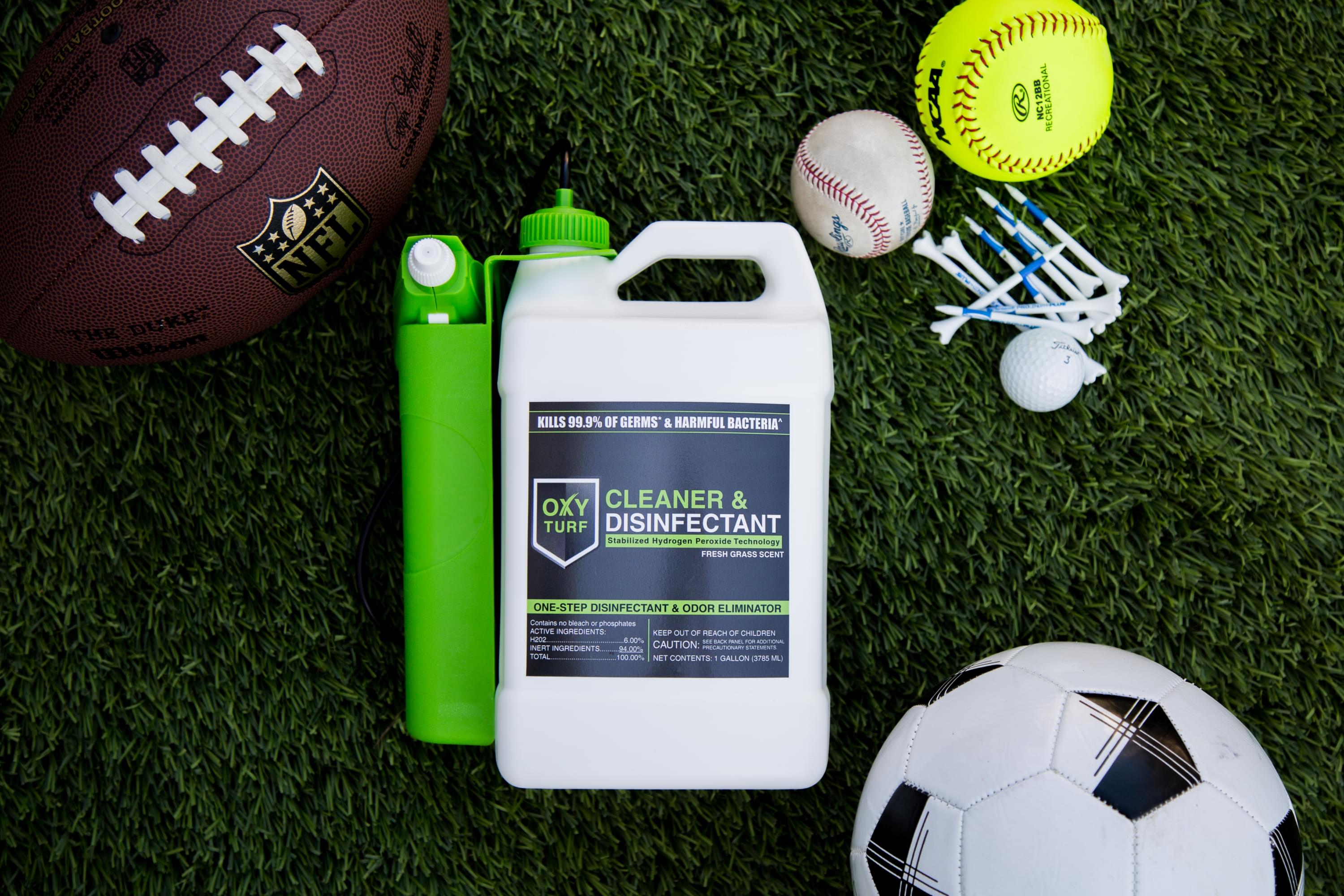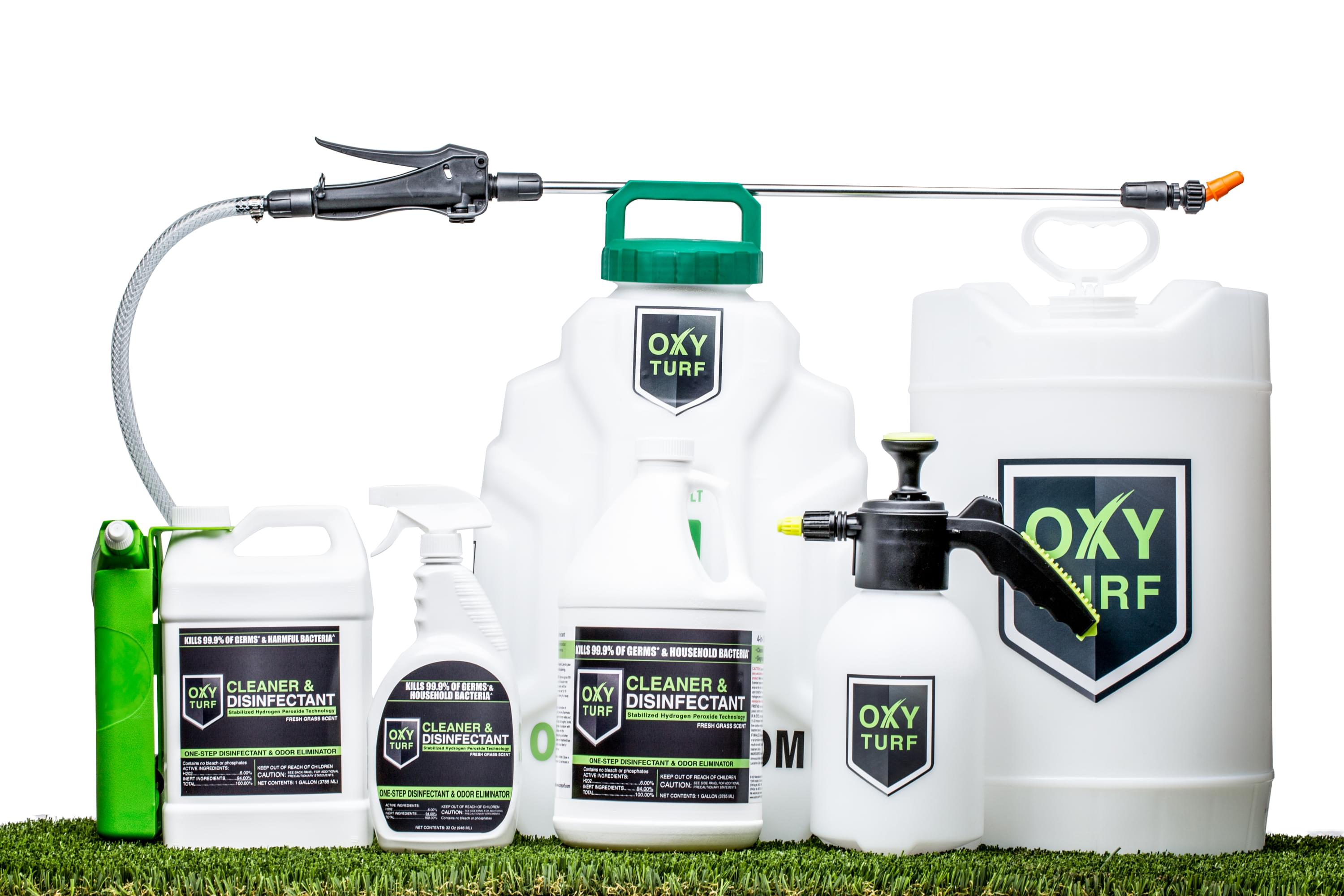 It is the only EPA-registered, one sep, ready-to-use, non-toxic, synthetic turf disinfectant & cleaner with hydrogen peroxide and the scent of fresh real grass! We partnered with renowned chemists to develop a healthy-concious, environmentally friendly product that is proven effective. OxyTurf's formula us a proprietary solution with patented stablized Hydrogen Peroxide Technology - H202.